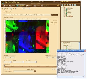 AV Video Morpher integra una serie de utilidades enfocadas a la edición cotidiana de vídeos. A través de sus pestañas podrás añadir efectos, editar, grabar y preparar las carátulas para tus películas.